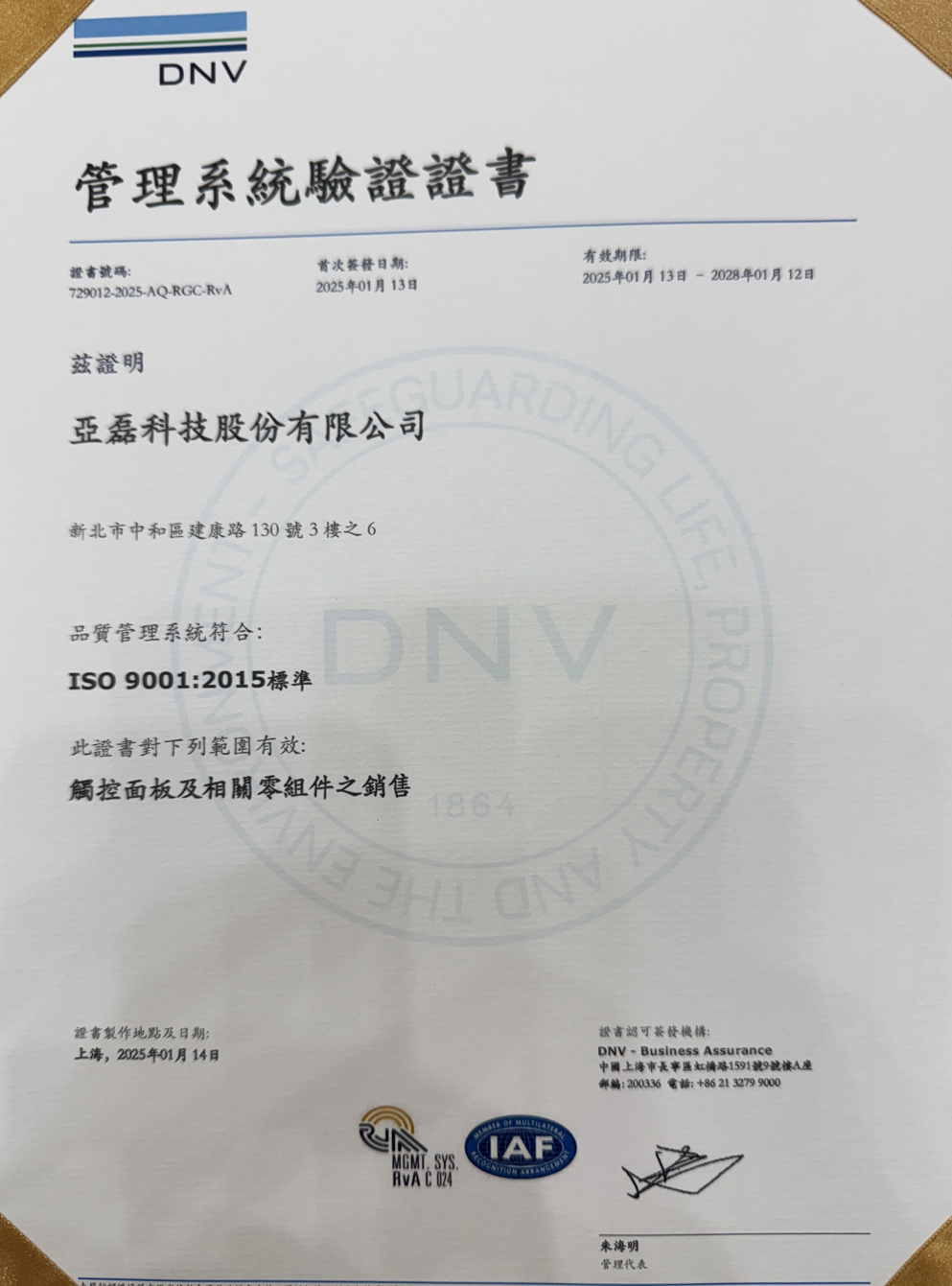 ISO9001: 2015 Certificate
